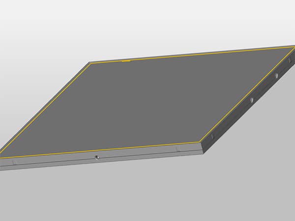 Le lastrine per ogni tipologia di stampi per ceramica vengono realizzate in acciaio k100 (1.2080) / k110 (1.2379) temprato 62-64 HRC, oppure con inserto sagomato tramite rettifica in metallo duro, sia con spigolo vivo che con angolo raggiato.
